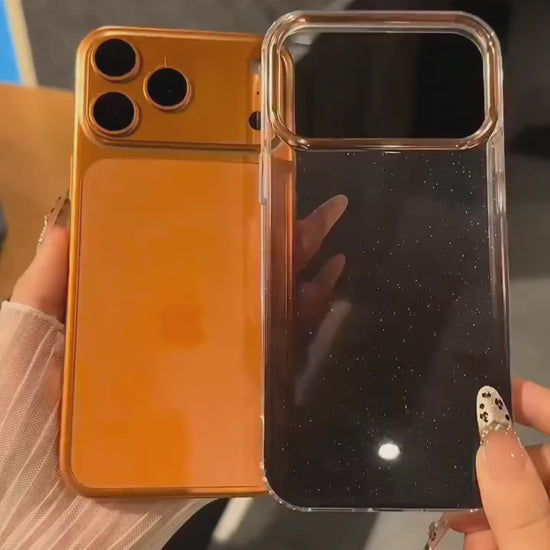 Elevate your iPhone 17 Series with this Gradient Galaxy Sparkle Case, designed to bring cosmic elegance and premium protection together. The case features a stunning fade from deep black to luminous copper-orange, accented with glitter that creates a starry-sky effect under any light.