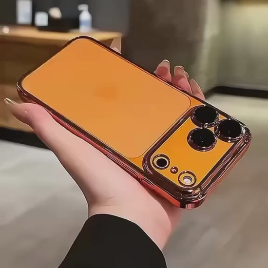 This is a crystal-clear, transparent iPhone case featuring a premium electroplated metallic frame. The edges have a shiny finish—rose gold/copper tone—which gives the case a luxurious and elegant appearance.