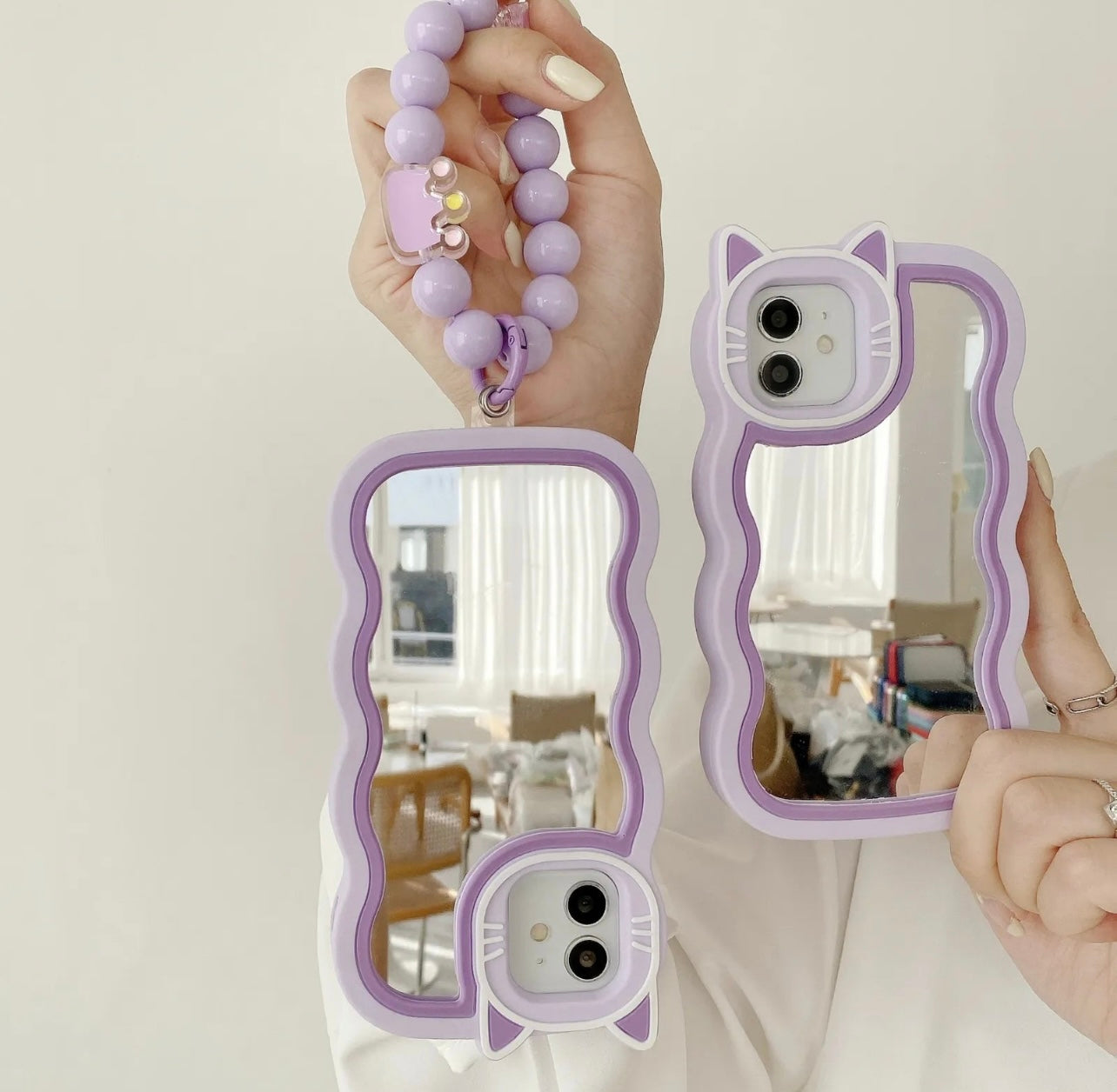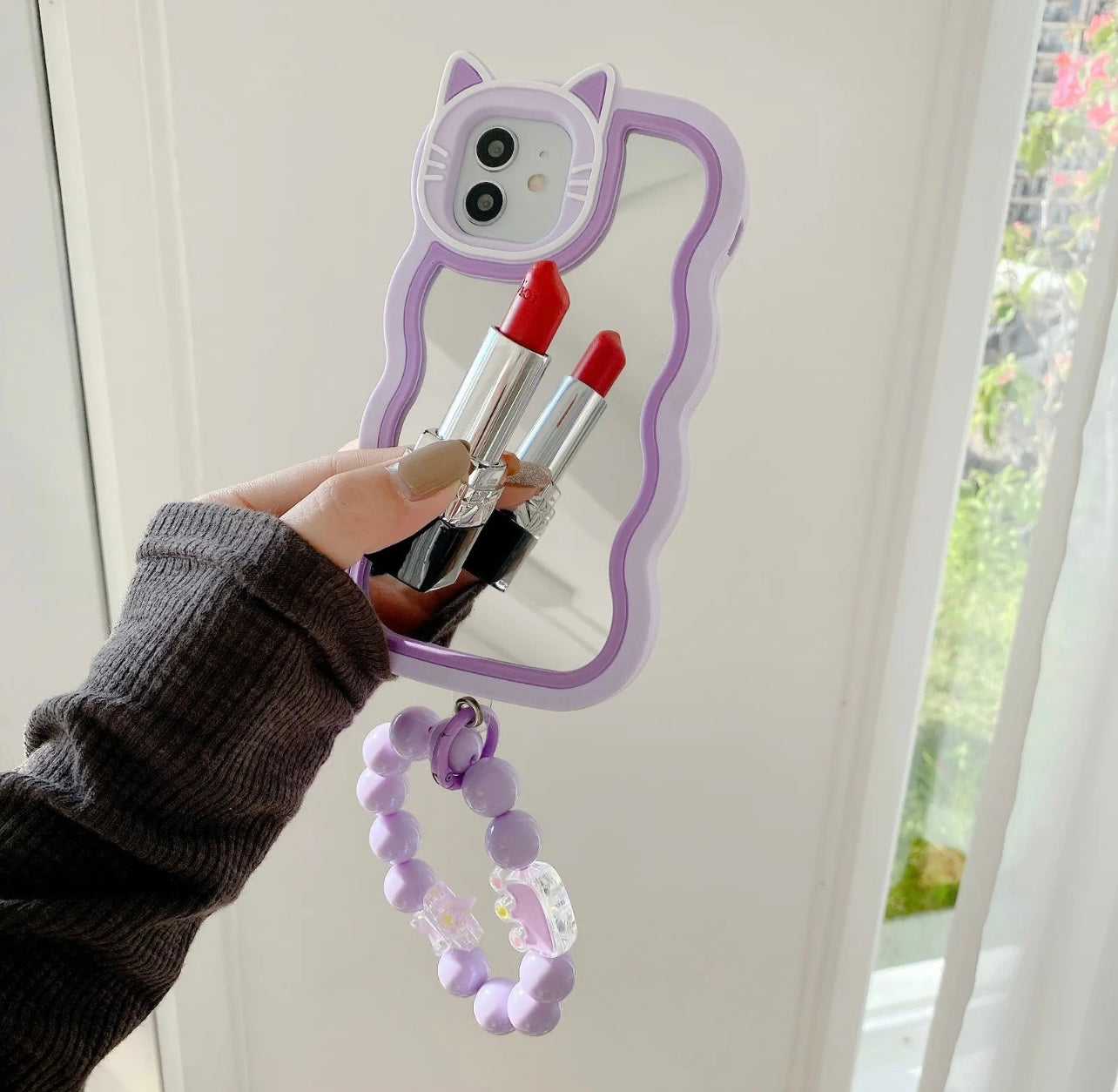 The New Purple Cat Mirror Case for iPhone with a chain is a stylish and functional accessory for your phone. This case features a cute purple cat design that adds a fun and playful touch to your iPhone. The mirror on the back of the case is handy for quick touch-ups or checking your reflection on the go. The chain allows you to wear your phone like a stylish accessory, keeping it close and easily accessible. Overall, this case combines fashion and functionality, making it a trendy choice for iPhone users who want to add a bit of flair to their device.